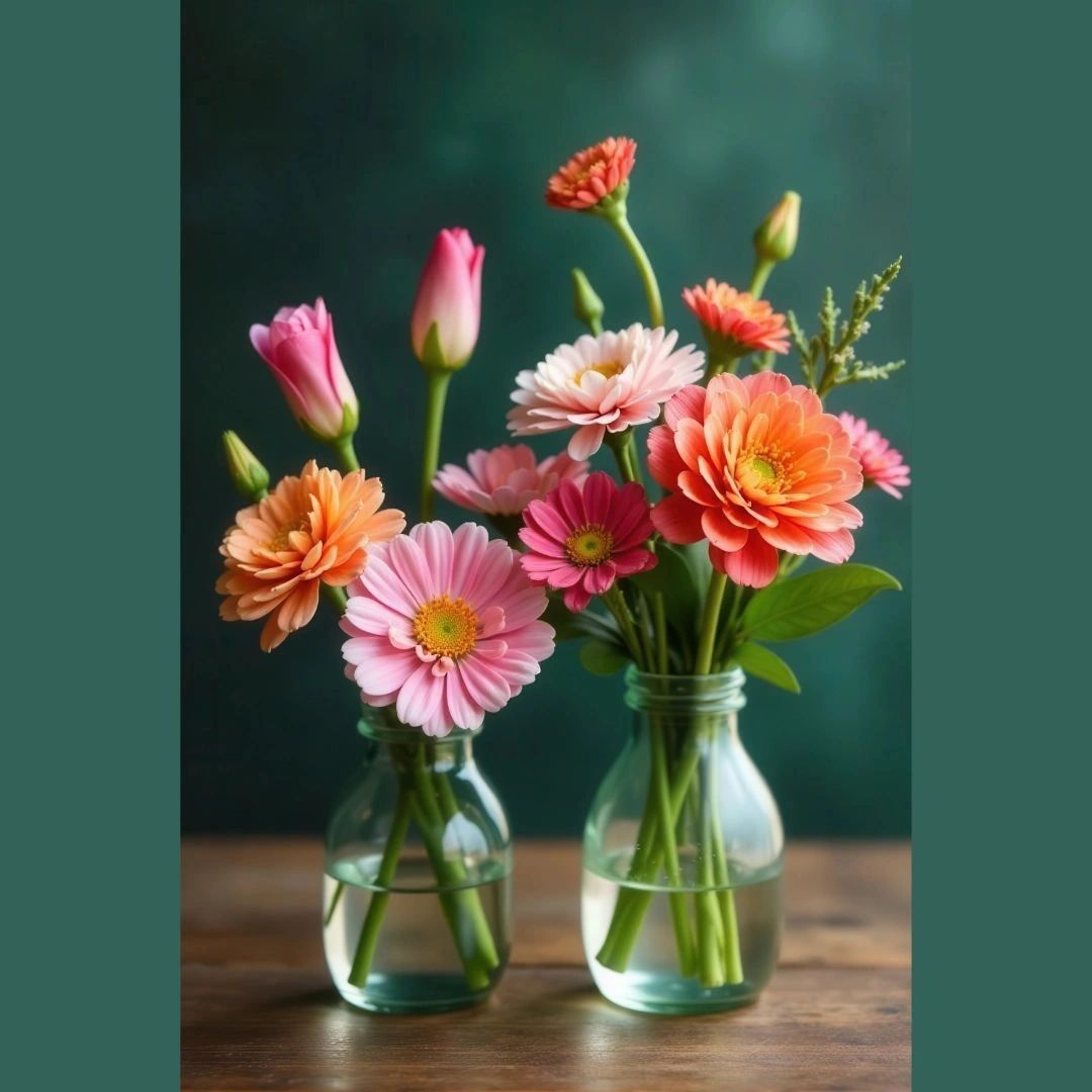 2-3 Beautiful Blooms with accents and vase $20. Refills $15